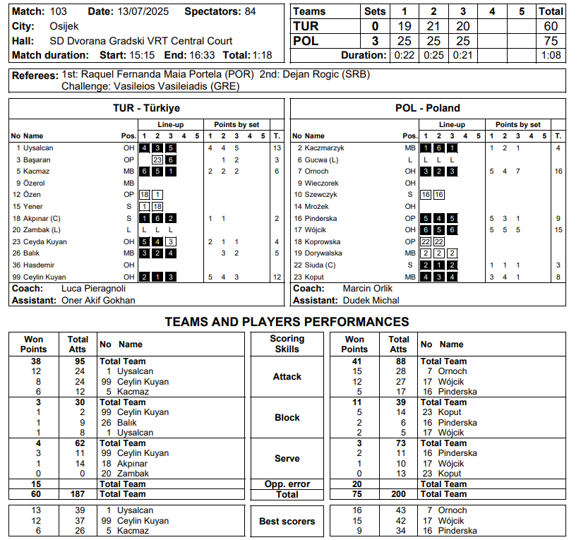 19 Yaş Altı Kadın Milli Takımımız, Hırvatistan'da düzenlenen U19 Dünya Şampiyonasında Dünya dördüncüsü oldu. Milliler, üçüncülük maçında karşılaştığı rakibi Polonya'ya 3-0 (25-19, 25-21, 25-20) mağlup oldu.