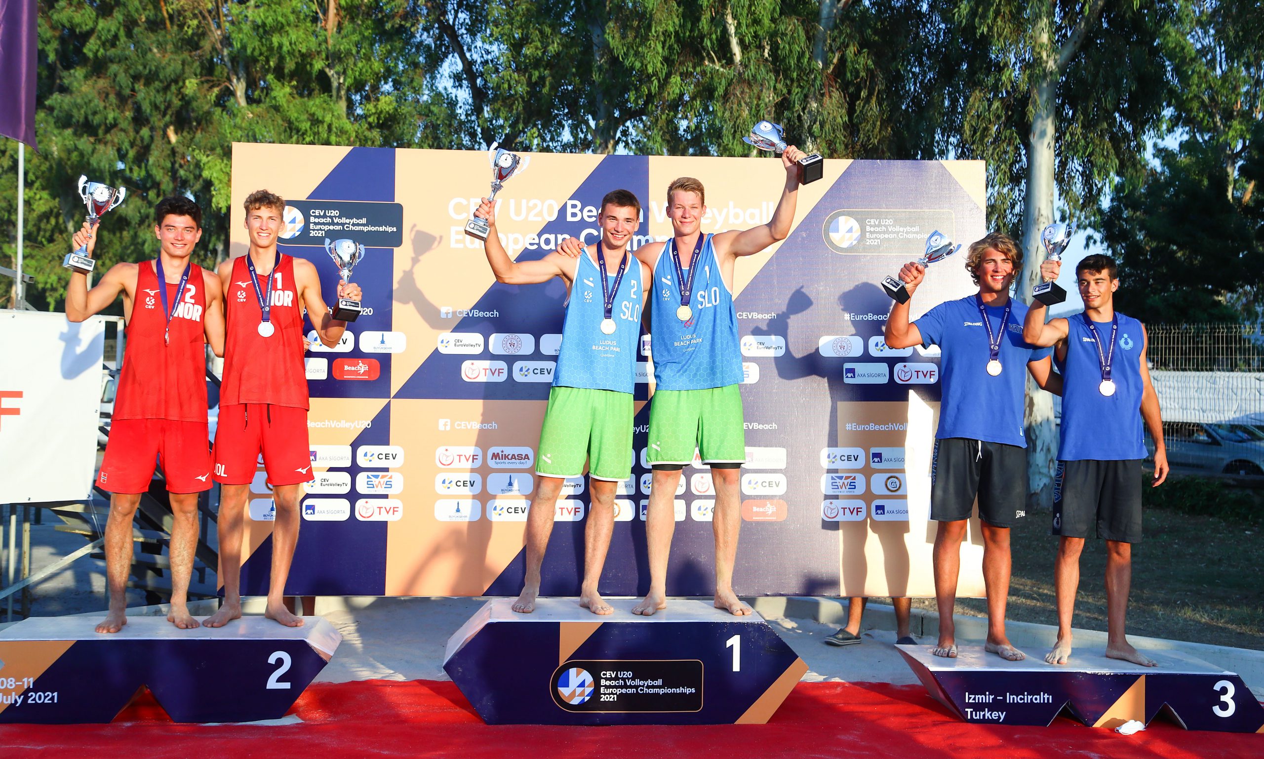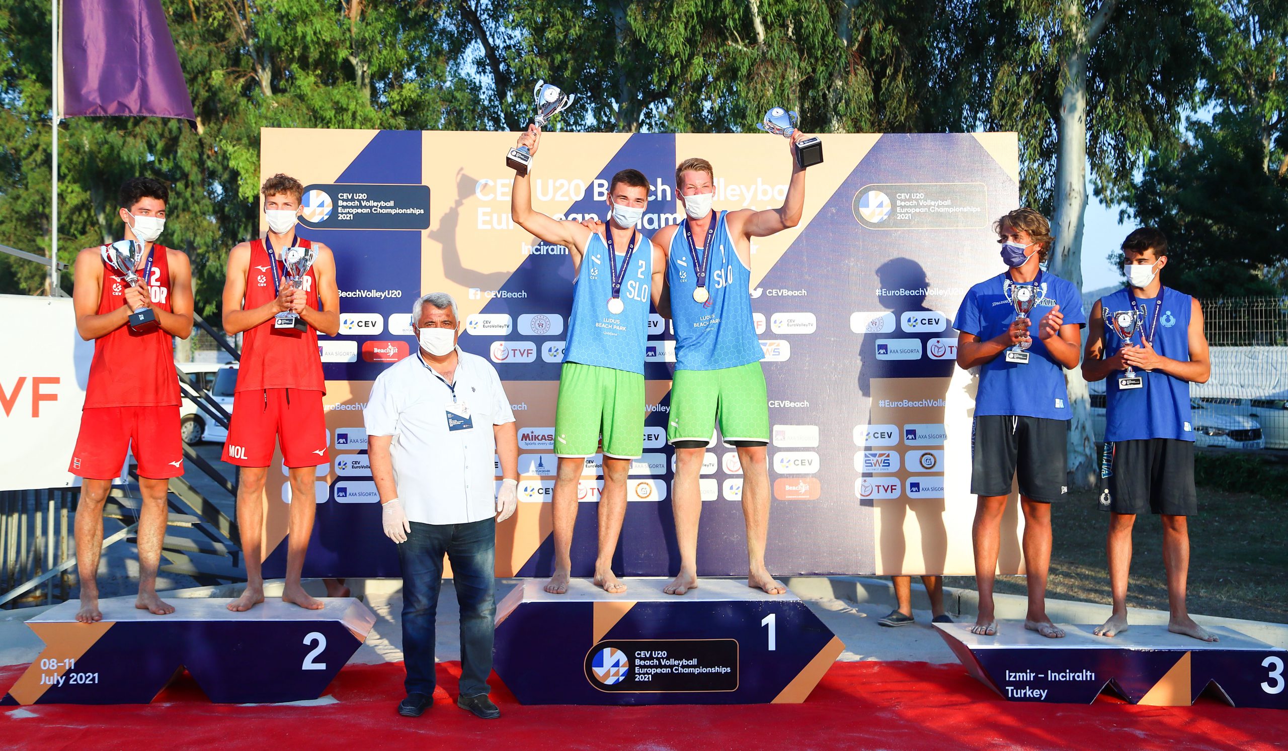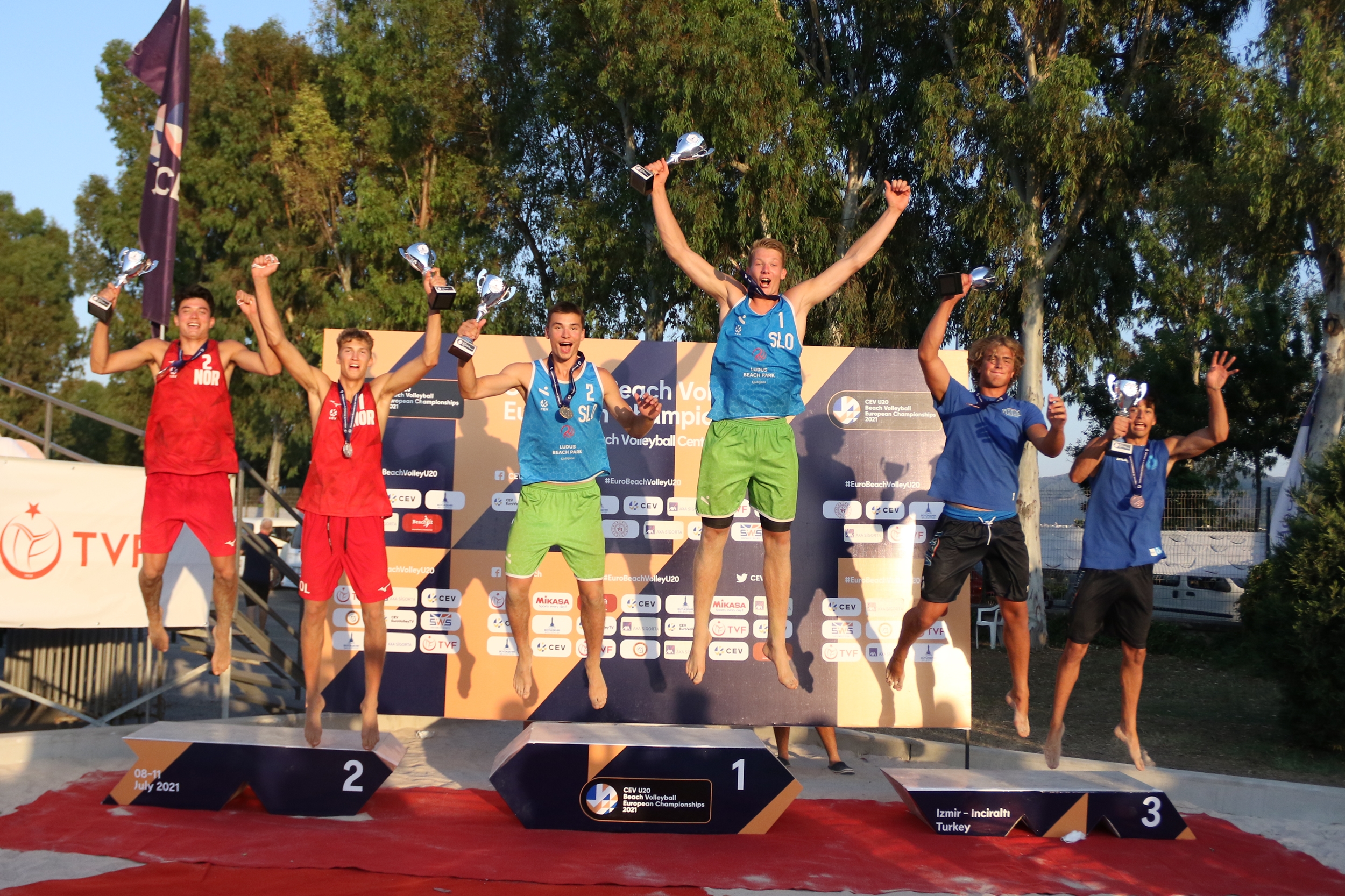 2021 CEV U20 Plaj Voleybolu Avrupa Şampiyonası’nda kupa ve madalyalar, erkekler ve kadınlar kategorilerinde oynanan final maçlarından sonra yapılan törenle sahiplerini buldu.