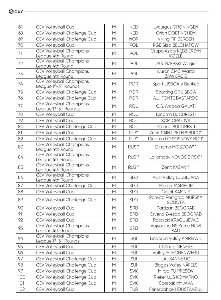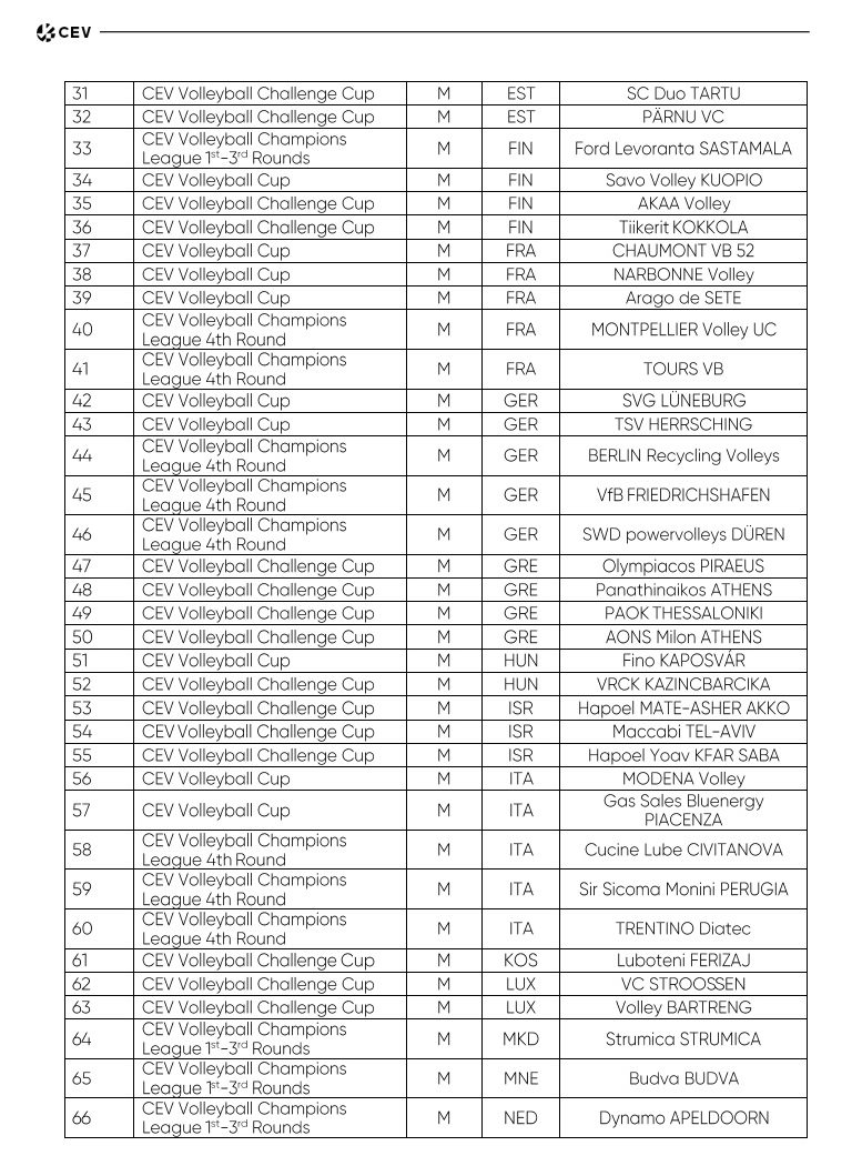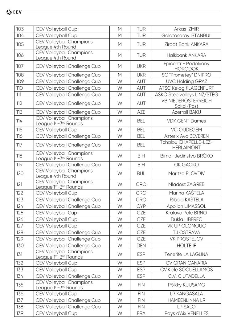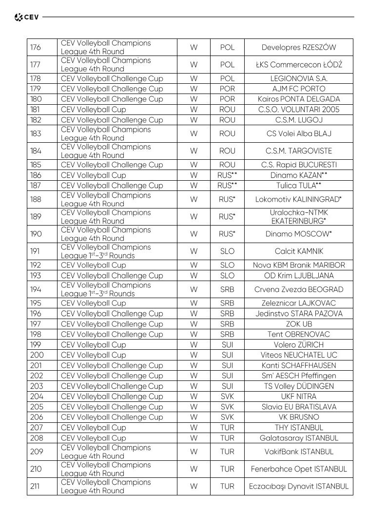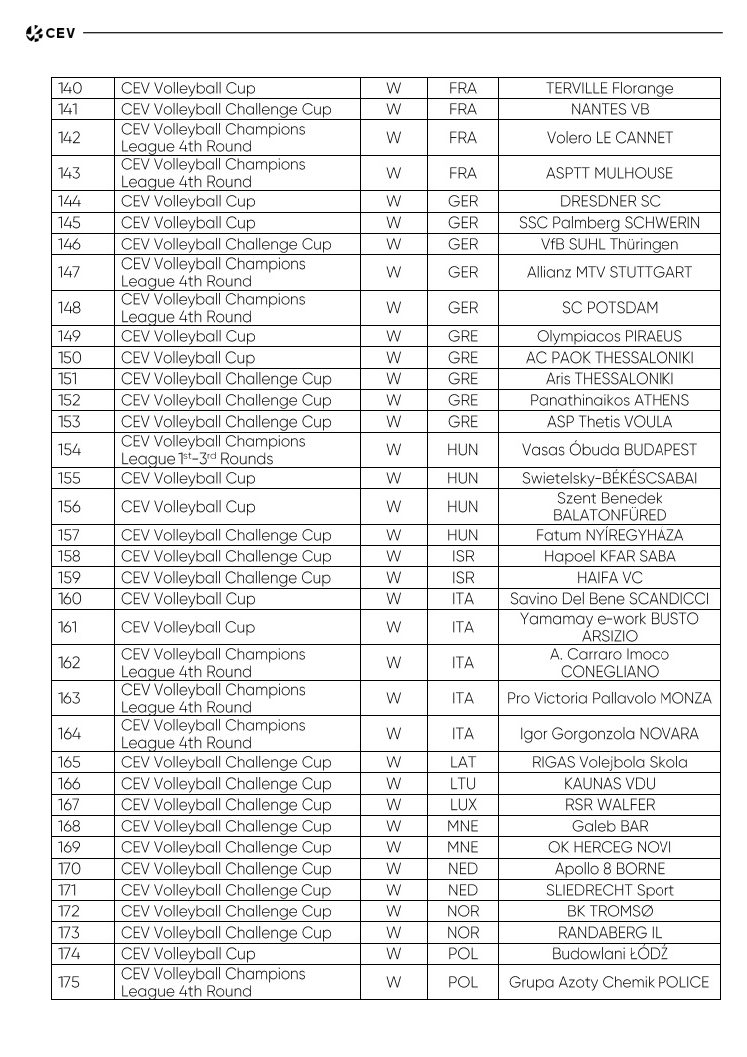Listede VakıfBank İSTANBUL ve Grupa Azoty KEDZIERZYN-KOZLE gibi 2022 yılında şampiyonalar Ligi şampiyonu olan gerçekten çok güçlü takımların yanı sıra gelecek vaat eden, tarihlerinde ilk kez uluslararası rekabetin eşsiz lezzetini deneyimlemek isteyen kulüpler yer almakta.