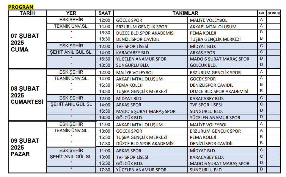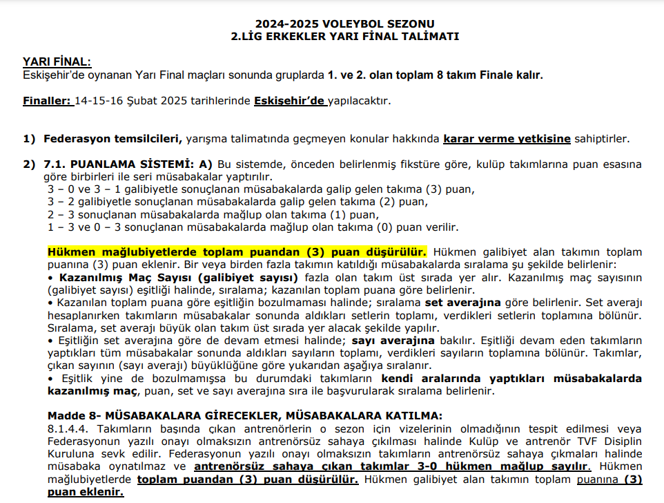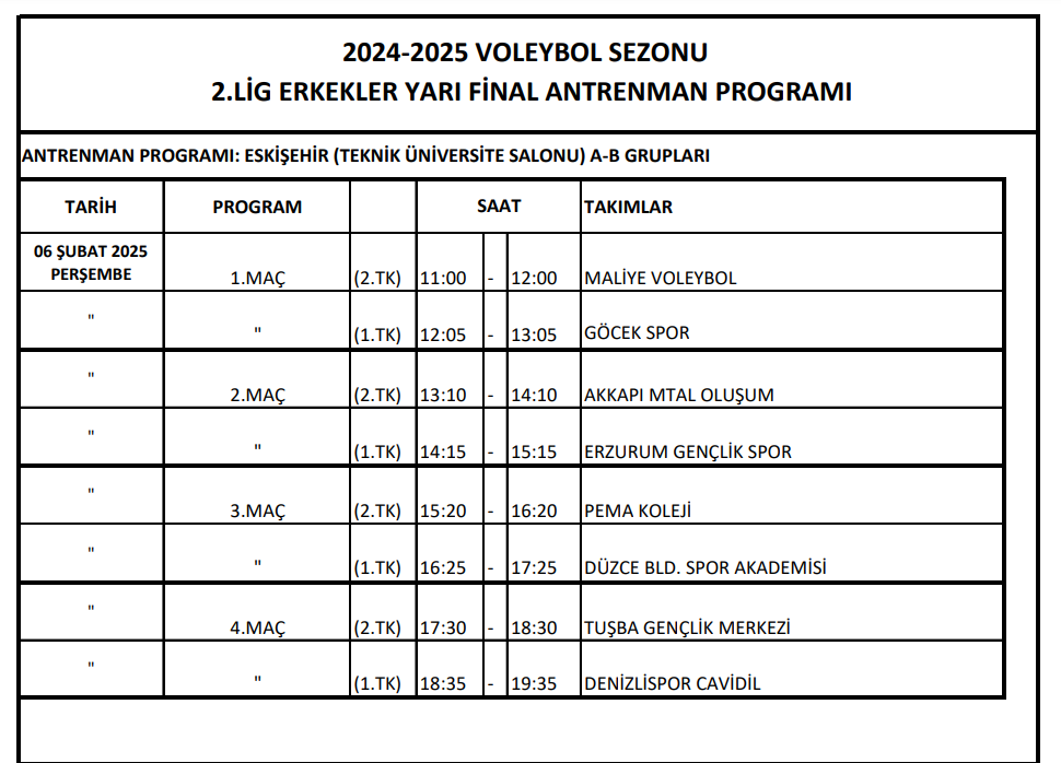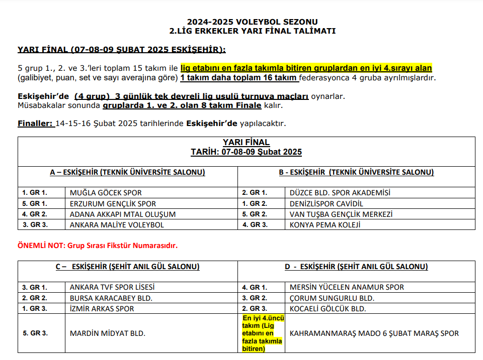 2.Lig Erkekler yarı final etabı fikstür, talimat ve antrenman programı belli oldu. Yarı Final Fikstür ve Talimatı - Eskişehir