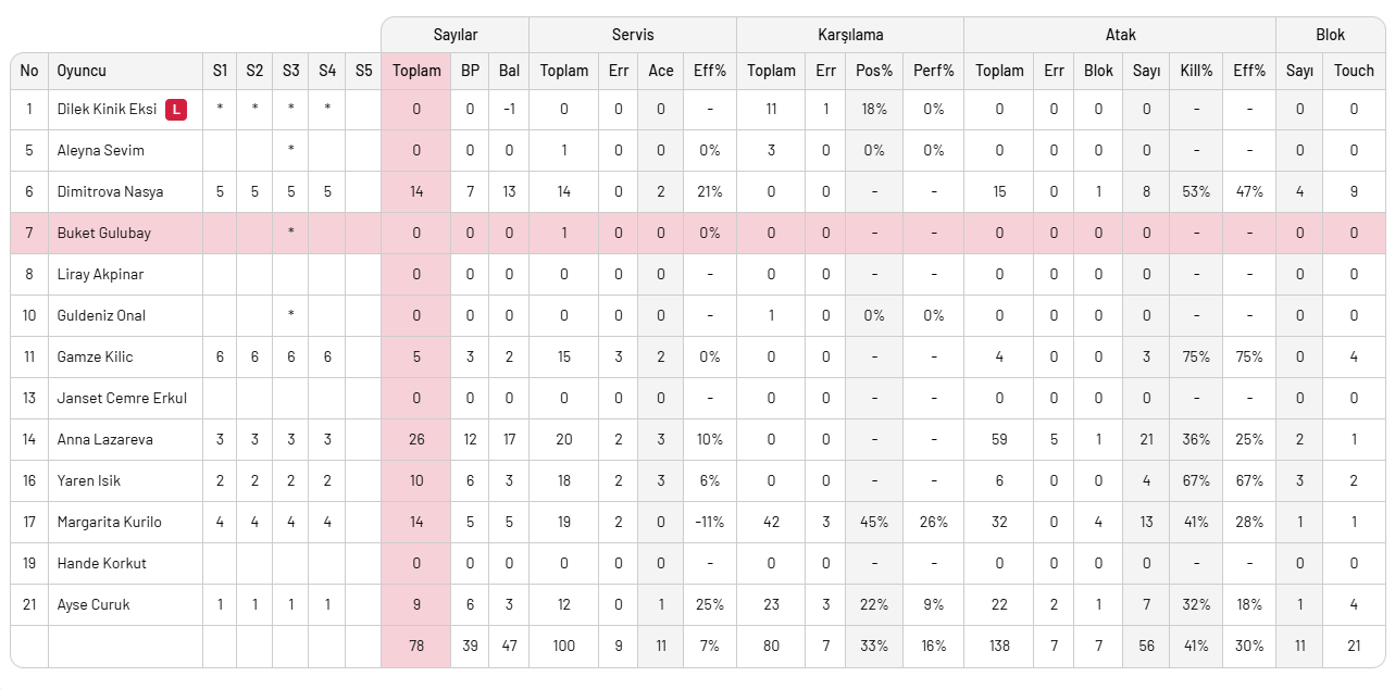 Kuzeyboru : Ayşe Cürük , Yaren Işık , Anna Lazareva , Margarita Kurilo, Nasya Dimitrova , Gamze Kılıç , (Dilek Kınık (L), Aleyna Sevim, Güldeniz Önal,