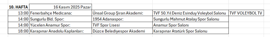Ligde 10. hafta karşılaşmlarının programı şöyle: