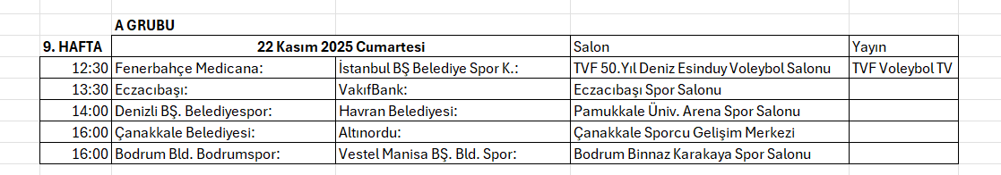 A Grubu'nda geride kalan 8 haftada oluşan puan durumu şöyle: