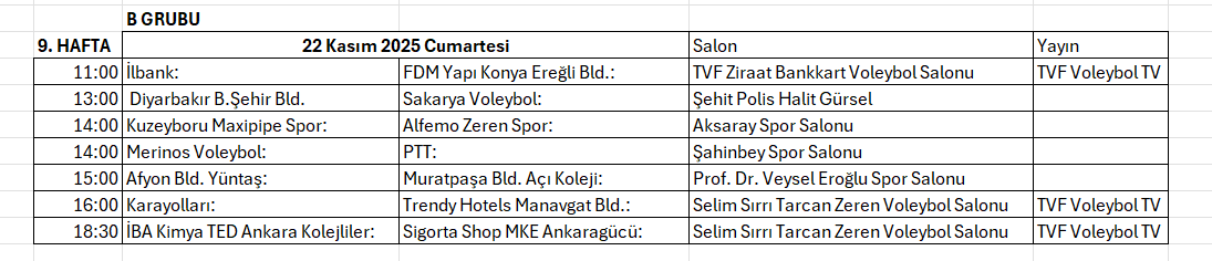 Arabica Coffee House Kadınlar 1. Ligi'nde 9. Hafta karşılaşmaları 22 Kasım Cumartesi günü oynanacak.