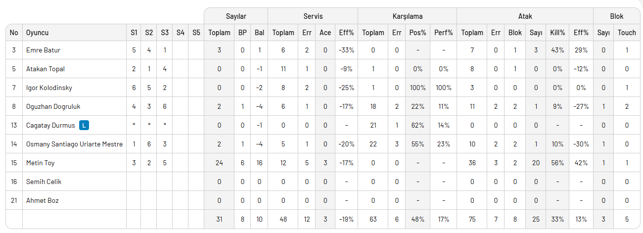 RAMS GLOBAL CİZRE BELEDİYESPOR: Emre Batur, Atakan Topal, Igor Kolodinsky, Oğuzhan Doğruluk, Osmany Uriarte, Metin Toy (Çağatay Durmuş)