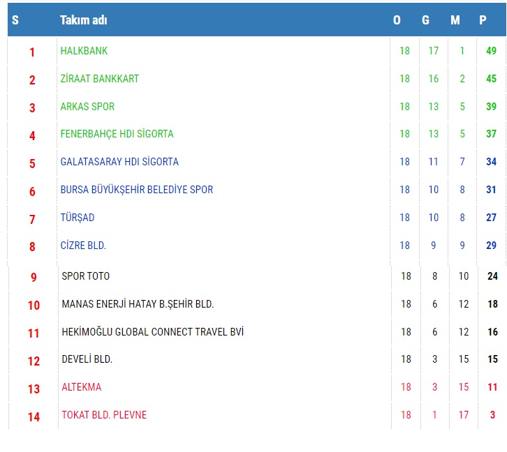 AXA Sigorta Efeler Ligi Metin Görgün Sezonu’nda 18. hafta, 5 Şubat Pazar günü oynanan 4 karşılaşmayla sona erdi. Günün sonuçları şu şekilde:
