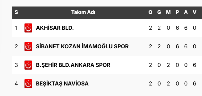 16.30 – B.Şehir Bld. Ankara Spor – Beşiktaş Naviosa