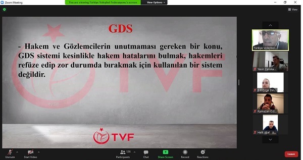 Türkiye Voleybol Federasyonu Merkez Hakem ve Gözlemci Kurulu (MHGK) Başkanı Aziz Yener, AXA Sigorta Efeler Ligi ve Misli.com Sultanlar Ligi’nde görev yapan Görüntülü Değerlendirme Sistemi (GDS) operatörleri ile online toplantıda bir araya geldi.