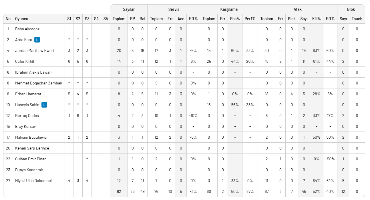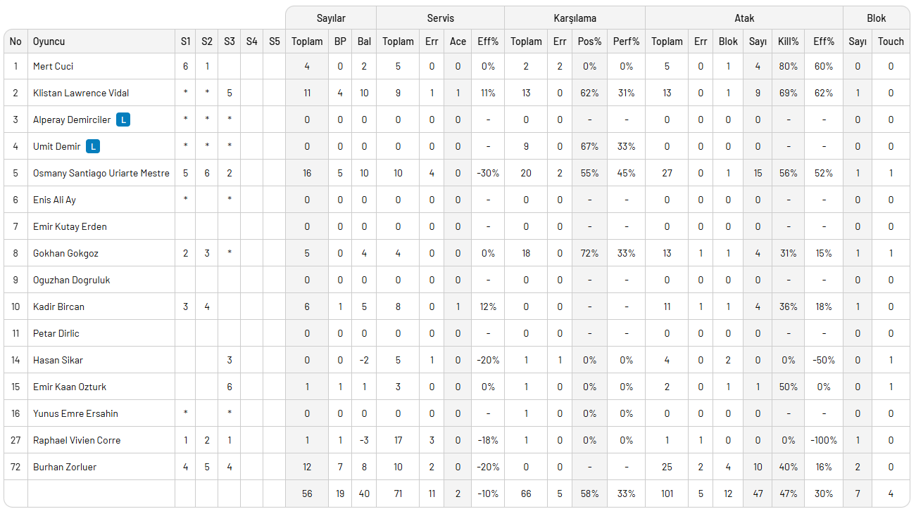 Atatürk Voleybol Salonu Vestel Spor Kompleksi'nde oynanan maçın setlerini 25-20, 25-23, 28-26 sonuçlandı.