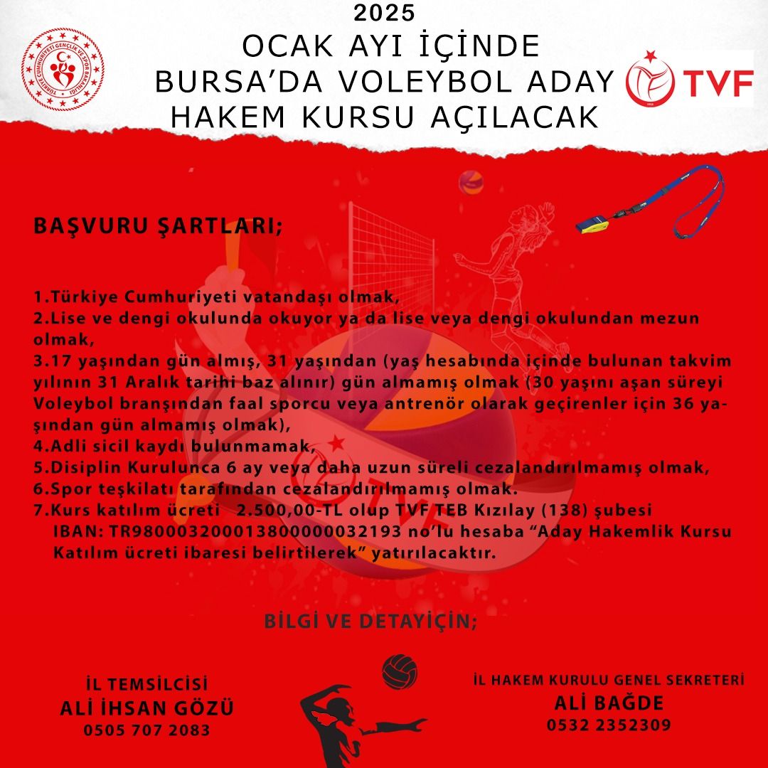 Bursa'da Voleybol Aday Hakem Kursu açılıyor.