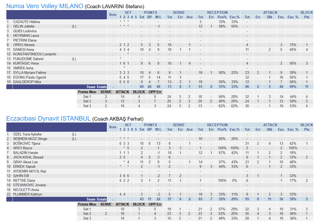 Numia Vero Volley Milano: 3 - Eczacıbaşı Dynavit: 0