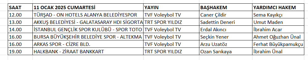 SMS Grup Efeler Ligi’nde 16. hafta karşılaşmaları 11 Ocak Cumartesi günü oynanacak. Haftanın maçlarında görev yapacak hakemler şöyle: