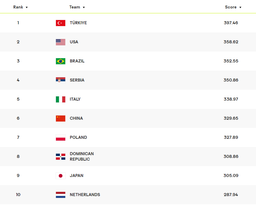 FIVB Dünya Sıralaması Ağustos 2024[/caption]