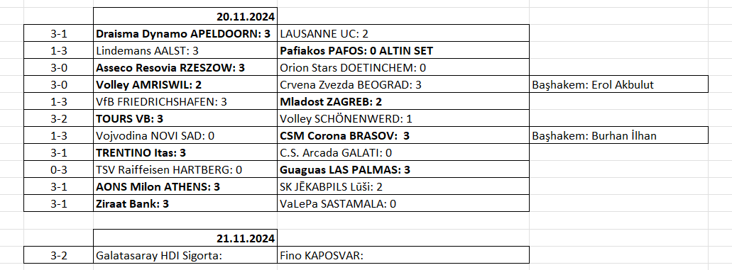 Bu kupadaki tek temsilcimiz Spor Toto, deplasmanda 3-0 yendiği Bulgaristan temsilcisi Neftohimik Burgas takımıyla 21 Kasım Perşembe günü karşılaşacak. Temsilcimizin maçta kazanacağı 2 set ile her türlü galibiyet tur atlamasını sağlayacak.