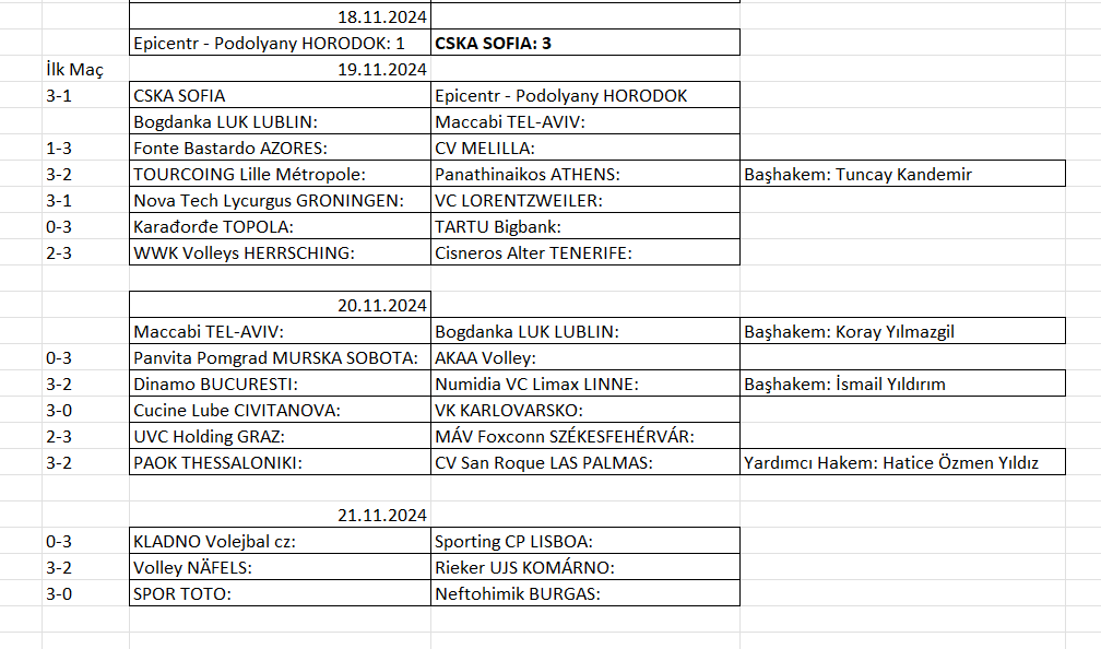 Ülkemizi Spor Toto Spor Kulübü’nün temsil ettiği 2025 CEV Challenge Cup’ta 8'li final etabı ikinci maçları başladı. Bu kupadaki tek temsilcimiz Spor Toto, deplasmanda 3-0 yendiği Bulgaristan temsilcisi Neftohimik Burgas takımı Bu turda Uluslararası Voleybol Hakemlerimiz Tuncay Kandemir, Koray Yılmazgil, İsmail Yıldırım, Hatice Özmen Yıldız da yönetecekleri maçlarla ülkemizi temsil edecekler.