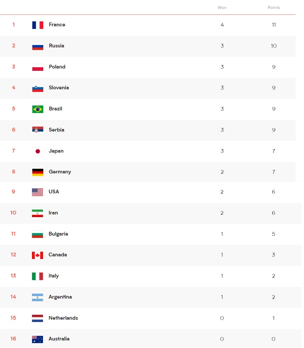 Erkekler VNL'de ikinci haftanın ilk gününde oynanan maçlar sonunda alınan sonuçlar, puan durumu ve 4 Haziran Cuma günü oynanacak maçların programı şöyle: