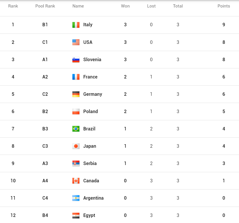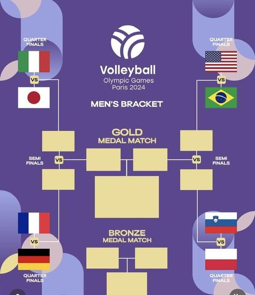 2024 Paris Olimpiyat Oyunlarında erkekler voleybolda grup maçları tamamlandı ve yarı final eşleşmeleri belli oldu.