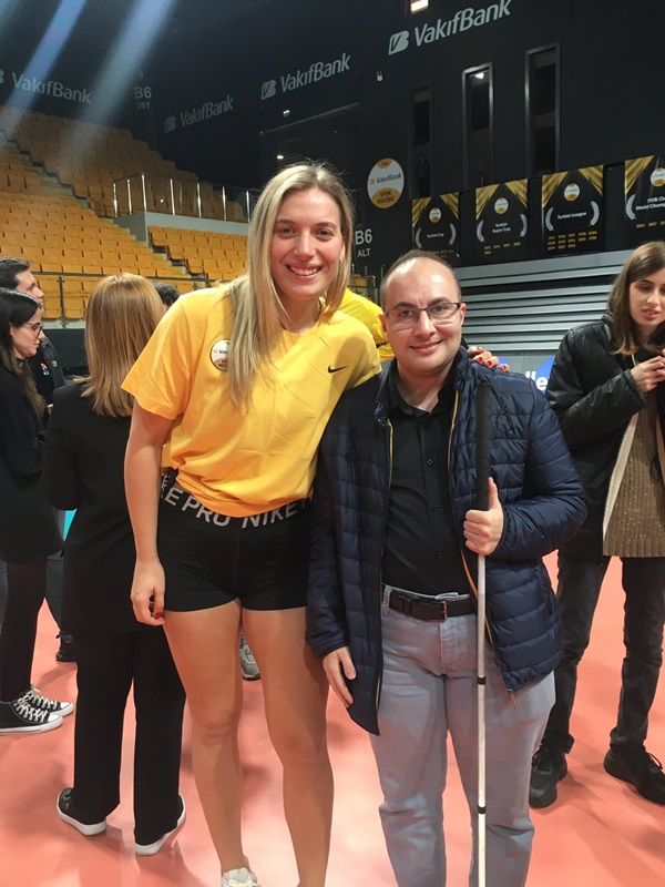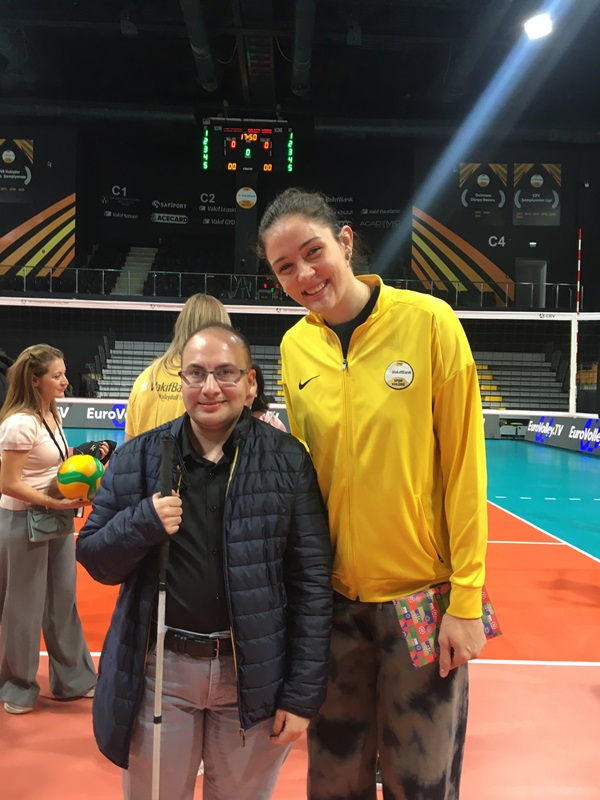 Erişilebilir voleybol yolunda atılan ilk adım olarak tarihe geçen ‘Herkes İçin Voleybol’ etkinliği, 6 Kasım 2024 tarihinde VakıfBank- Calcit Kamnik CEV Şampiyonlar Ligi grup maçında gerçekleştirildi. Ankara’da yaşayan Homo İbretus, heyecanını ‘Maç günü sabah erkenden Ankara’dan İstanbul’a doğru yola çıktım. Dört buçuk saatlik tren yolculuğu boyunca etkinlikle ilgili düşüncelere daldım. Guidetti’ye görme engellilere yönelik voleybol betimleme yazılarımdan bahsetme fırsatım olacak mıydı? Zehra Güneş’e hediyemi ulaştırabilecek miydim? Cansu Özbay da bizi görecek miydi?’ sözleriyle açıkladıktan sonra Blind Look ekibi ve diğer katılımcılarla beraber Vakıfbank Spor Sarayı’na ulaşıyor.