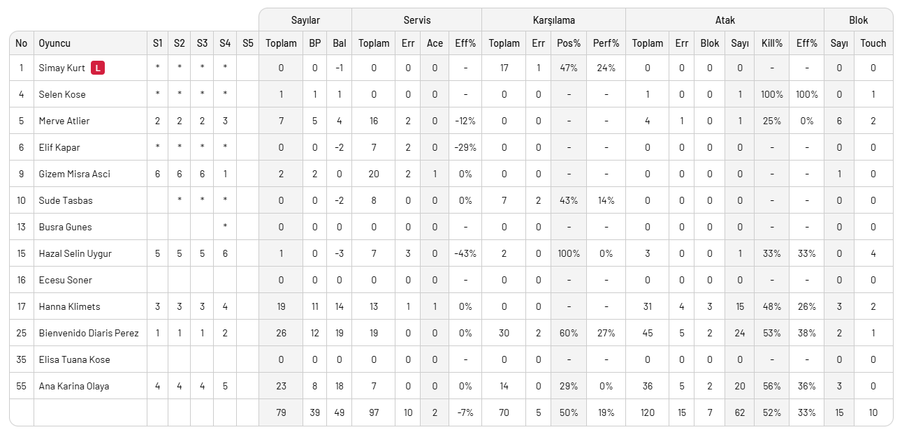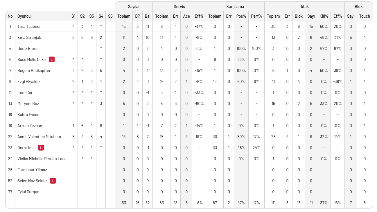 Sarıyer Belediyespor: Tara, Ema, Begüm Hepkaptan, Ezki Akyaldız, Arzum Tezcan, Mitchem, (Deniz Emrelli, Melis Buse Cılkız, İrem Çor, Meryem Boz, Berre İnce, Michelle)