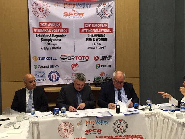 2021 Avrupa Oturarak Voleybol Şampiyonası'nın Antalya'da yapılması için imzalar atıldı. Ankara Green Park Hotel'de gerçekleştirlen imza törenine Türkiey Bedensel Engelliler Spor Federasyonu Başkanı Arif Ümit UZTÜRK ve Avrupa Paravolley Komitesi Başkanı Branko Mİ̇HORKO ile TBESF Yönetim Kurulu Üyesi ve Oturarak Voleybol branş sorumlusu Oğuz ÇERİK, TBESF Başkan Yardımcıları İlhami KILINÇKAYA ve İrfan ÇELİK katıldı. 2021 Avrupa Oturarak Voleybol Şampiyonası 1-10 Mayıs 2021 tarihleri arasında Antalya'da oynanacak Sampiyonaya, 15 Kadın, 15 de Erkek olmak üzere, 30 takım katılacak. Engelli vatandaşların spora teşvik edilmesi için çağrıda bulunan başkan Uztürk, “Federasyonumuz 22 spor dalında faaliyet yapıyor. Sporcu sayımızı artırmak için çalışıyoruz. Engelli vatandaşlarımızı federasyonumuz bünyesinde spor yapmaya davet ediyoruz” diye konuştu.