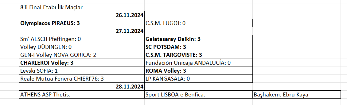 Bu turda Uluslararası Voleybol Hakemlerimizden Ebru Kaya, Athens ASP Thetis – Sport Lisboa e Bengica karşılaşmasında Başhakem olarak görev yapacak.