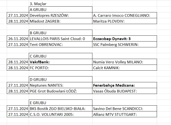 2025 CEV Kadınlar Voleybol Şampiyonlar Ligi gruplarında üçüncü maçlar başladı.