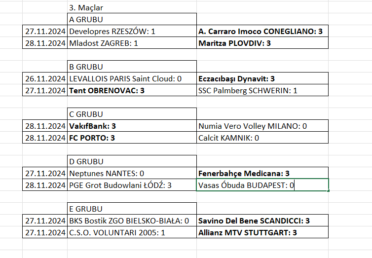 2025 CEV Kadınlar Voleybol Şampiyonlar Ligi gruplarında üçüncü maçlar tamamlandı.