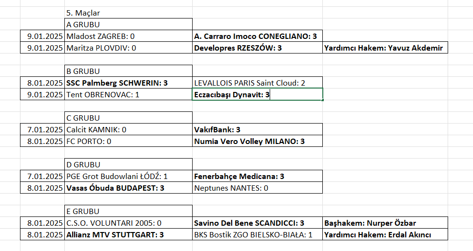 Kadınlarda 2025 CEV Şampiyonlar Ligi gruplarında 5. maçlar tamamlandı.