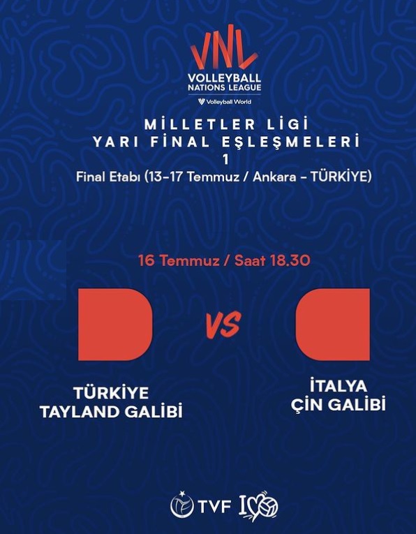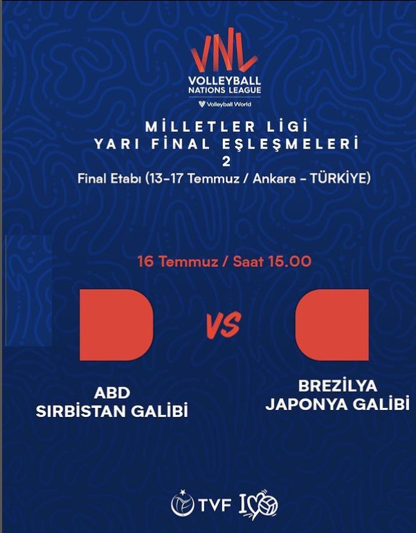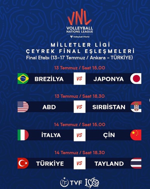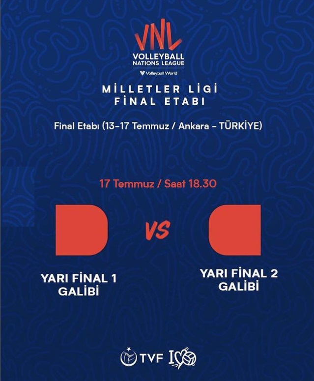 13-17 Temmuz arasında Ankara Spor Salonu’nda oynanacak Voleybol Milletler Ligi Final Etabı karşılaşmalarının programı belli oldu: