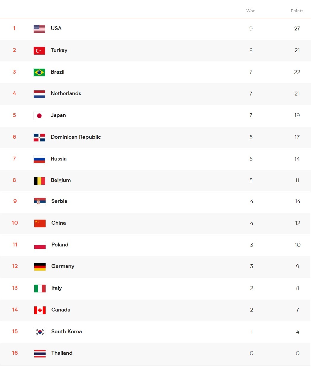 8 Haziran Salı günü oynanan maçlarla VNL’deki üçüncü hafta karşılaşmaları tamamlanmış oldu. Günün sonuçları şöyle: