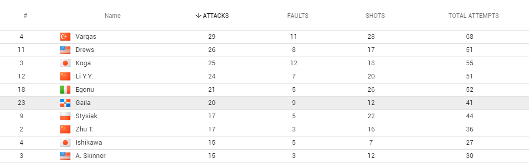 İlk maçlar sonunda oyuncuların istatistiklerine göre sıralaması da şu şekilde oluştu: