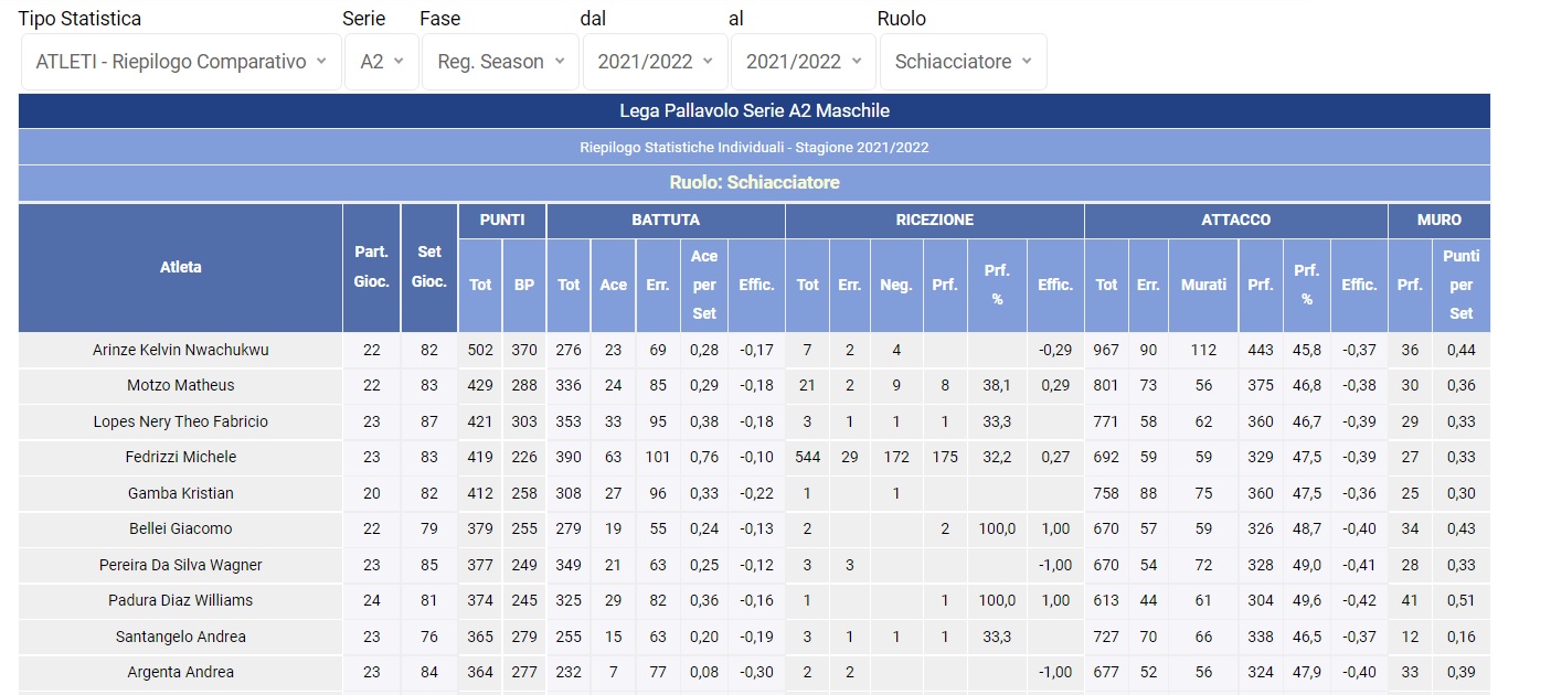 2021-2022 sezonunun başında Fenerbahçe'den İtalya'nın Serie A2 kulüplerinden SYNERGY MONDOVI'ya kiralanan 215 cm boyundaki dev Nijeryalı Kelvin Arinze Nwachukwu 500'ler kulübüne girdi.20 yaşındaki Nijeryalı 8 Mayıs 2022 doğumlu oyuncu, ligde oynadığı 22 maçta, 82 sette yer aldı ve 502 sayı üretti. Set başına 6,12 sayı, 45 hücum, 43 blok ve 23 servis sayısı ortalaması ile ortalaması ile oynayan genç oyuncu CREDEM BANCA SERIE A2 nin en skorer oyuncusu oldu.