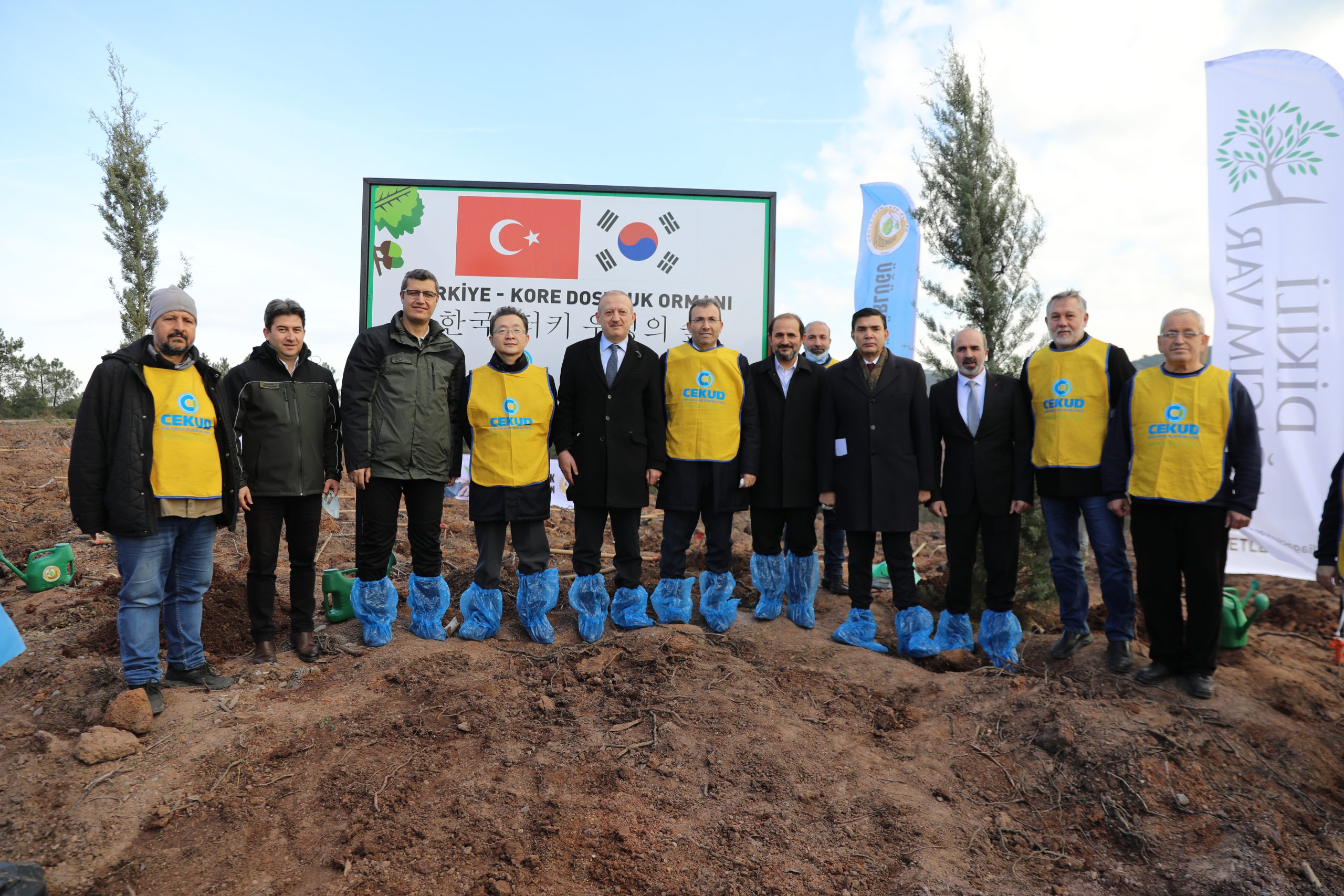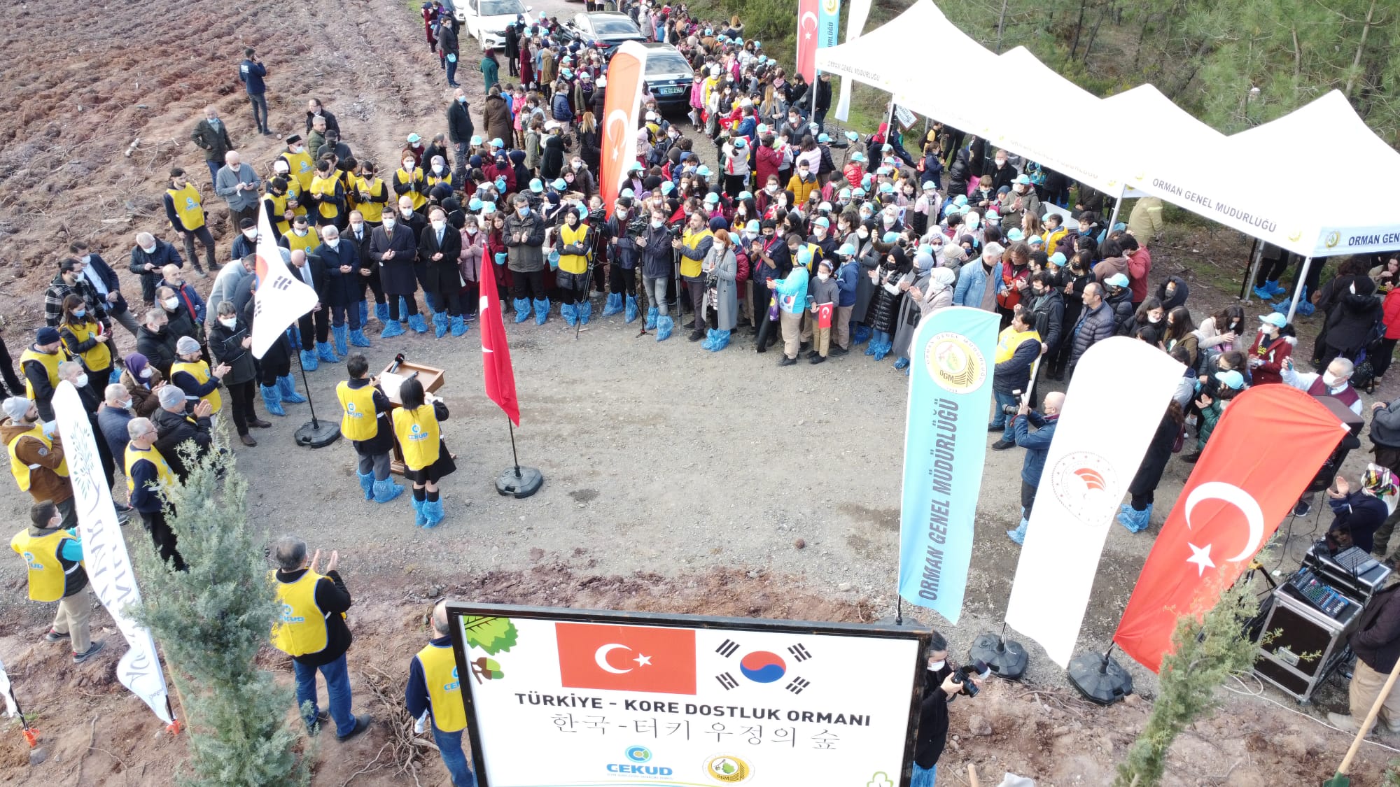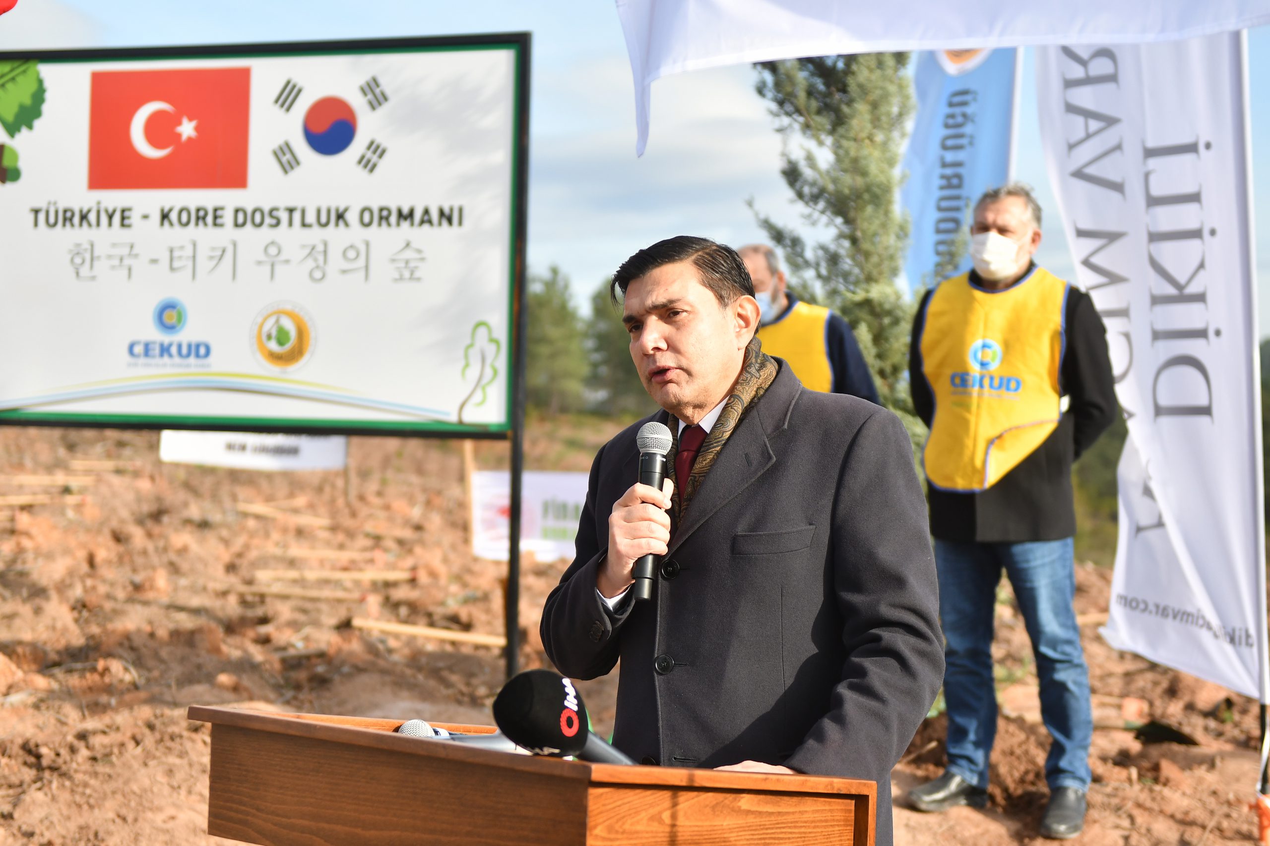 ÇEKUD Yönetim Kurulu Başkanı Eyüp Debik de bu yıl 28 Temmuz’da başlayıp 17 gün süren ve herkesi derinden üzen Türkiye tarihinin en büyük orman yangınlarının yaşandığını hatırlatarak, “Türkiye-Kore Voleybol karşılaşmasının ardından Kore Cumhuriyeti Voleybol Milli Takımı Kaptanı Kim Yeon-Kyoung’un yaptığı fidan bağışı çağrısı üzerine on binlerce Koreli doğasever, ‘dikiliagacimvar.com’ üzerinden Türkiye’ye 130 binden fazla fidan bağışında bulundu ve bugün bu rakam 150 bine yaklaştı. Türkiye-Kore Dostluk Ormanlarını, Koreli turistlerin de yoğun şekilde tercih ettiği Antalya, Muğla, Nevşehir, Kilis, Osmaniye ve İstanbul’da kuruyoruz.” dedi.