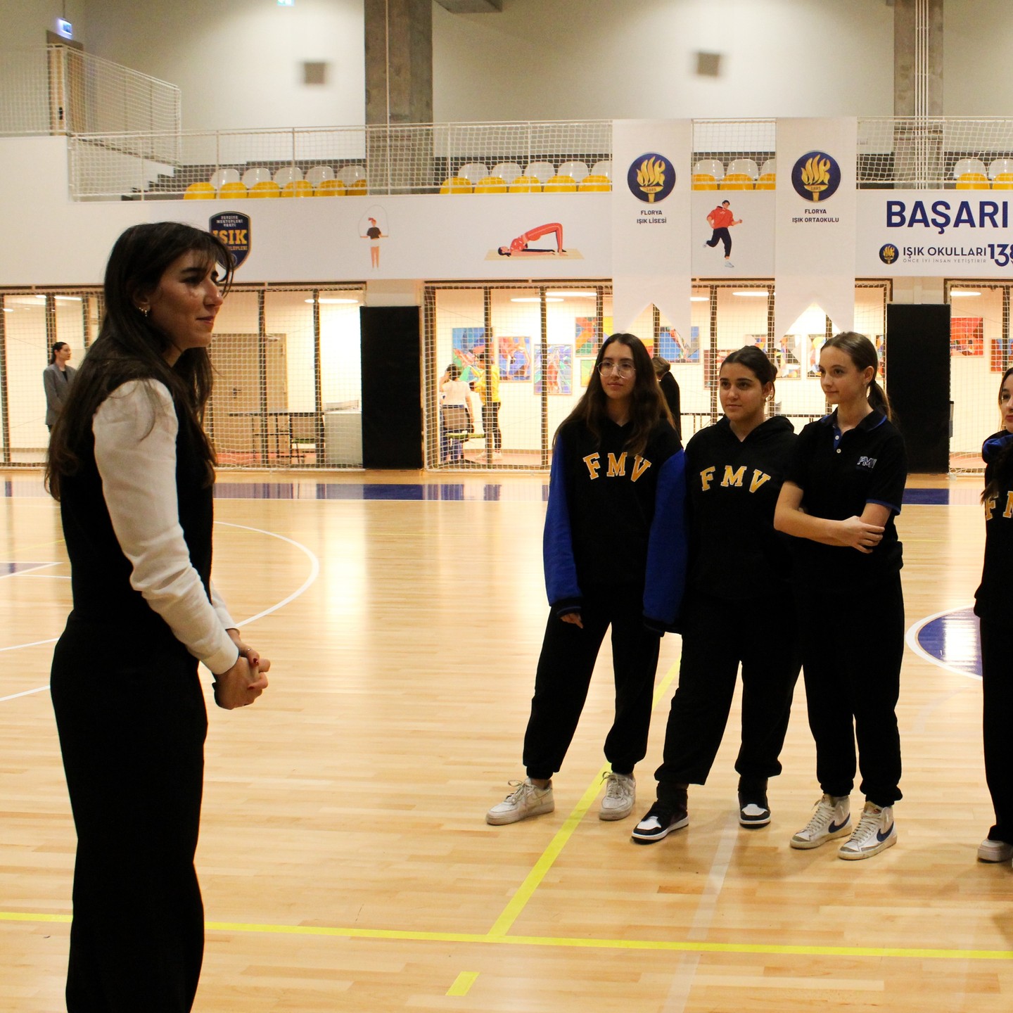 Melis Durul, Cumhuriyetin 100. yılında ülkemize armağan edilen ve çağın son gerekliliklerini kapsayan Florya yerleşkesinde öğrencilerle bir araya geldi. Melis Durul’a birçok takımda baş antrenörlük yapan ve şu anda Işık Spor Sportif Faaliyetler Direktörü olarak görev yapan Uğur Ülkü eşlik etti.