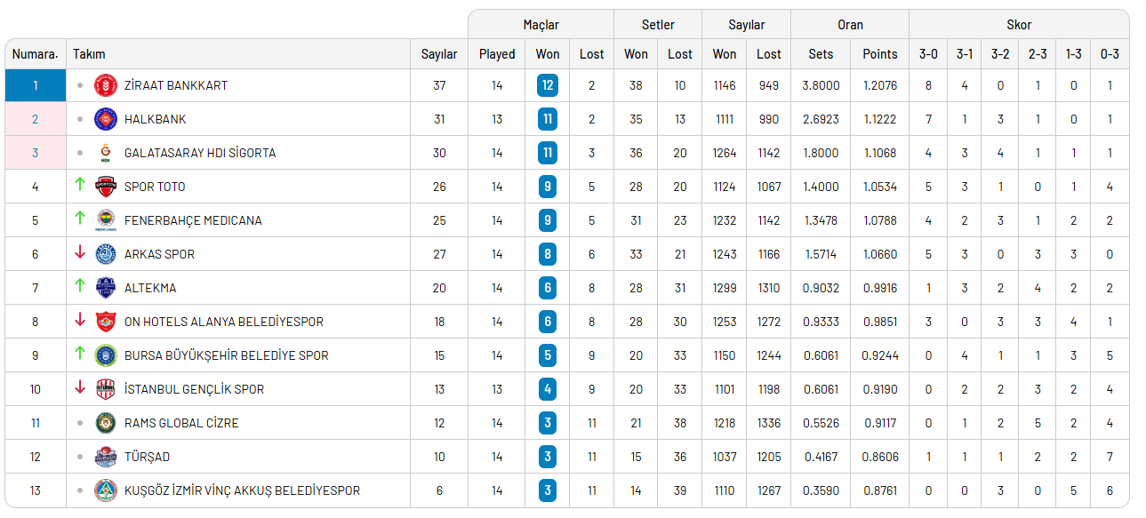 Ligde geride kalan 16 haftada oluşan puan durumu şöyle: