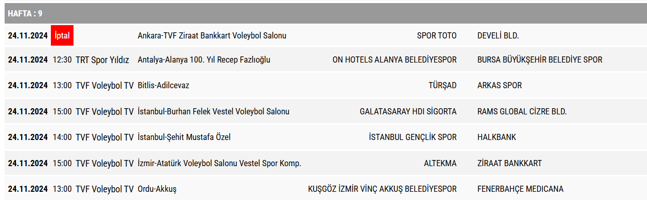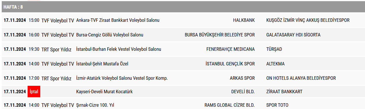 SMS Grup Efeler Ligi’nde 8. ve 9. Haftanın Programı Açıklandı