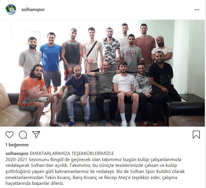 AXA Sigorta Efeler Ligi'nin yeni takımı Solhan Spor, önümüzdeki sezon maçlarını Bingöl'de oynayacak olması sebebiyle Solhan'dan ayrıldı. Yeşil beyazlı takım, Solhan'da bulunduğu sürede çalışmalara bulunan kulüp personeli ile vedalaşırken, sosyal medya aracılığı ile teşekkür etmeyi ihmal etmedi.