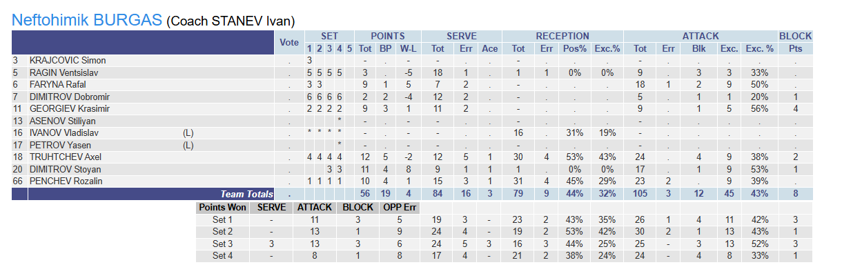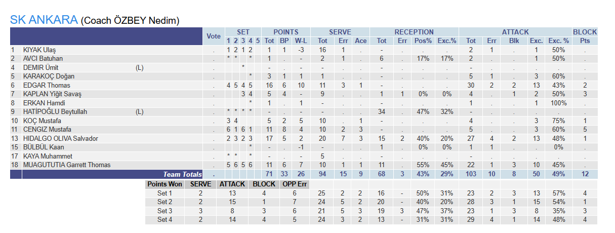 Setler: 25-19, 25-23, 20-25, 25-17
