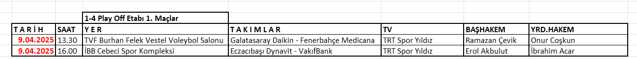 Vodafone Sultanlar Ligi’nde Play-Off 1-4 etabı, 9 Nisan Çarşamba günü oynanacak ilk karşılaşmalarla başlıyor. Bu maçlarda görev yapacak hakemler belli oldu.