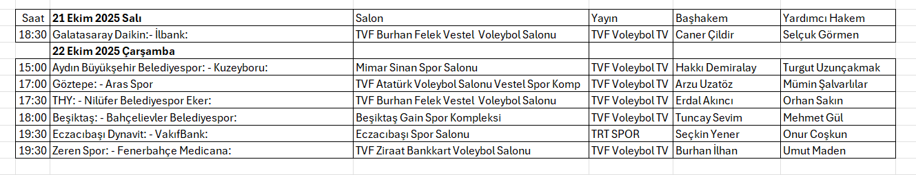 Sultanlar Ligi’nde 3. hafta maçları 21 Ekim 2025 Salı günü oynanacak üç karşılaşma ile başlayacak.