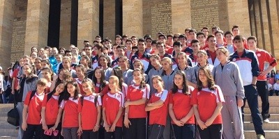 Genç sporcular ve çalıştırıcıları, başta Atatürk ve silah arkadaşları olmak üzere, Türkiye’nin bugünlere gelmesini sağlayan herkese saygılarını sundu.