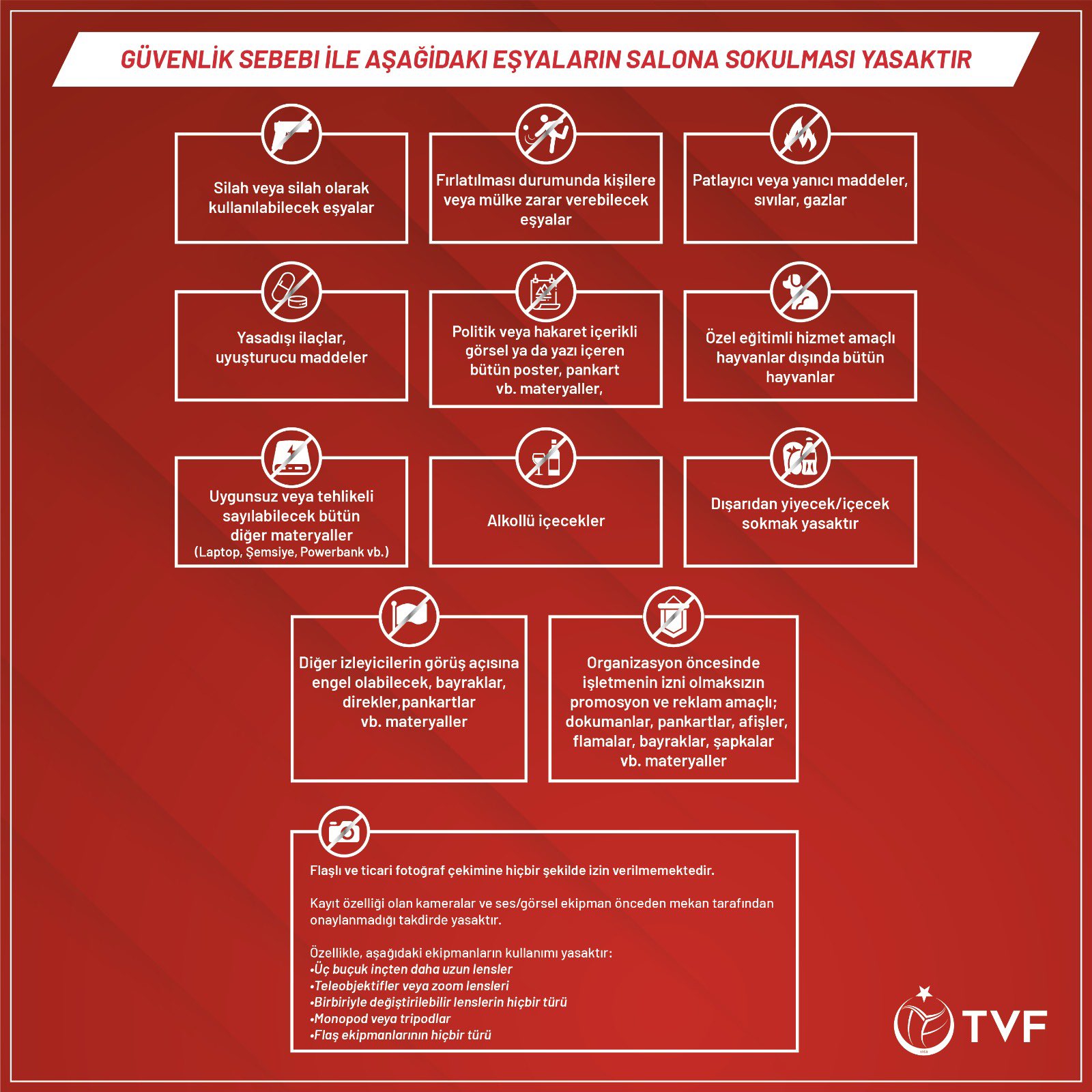 TVF'den Önemli UyarıTVF, Dünya Kulüpler Şampiyonası'nı Ankara Spor Salonu'nda seyredecekler için önemli uyarı