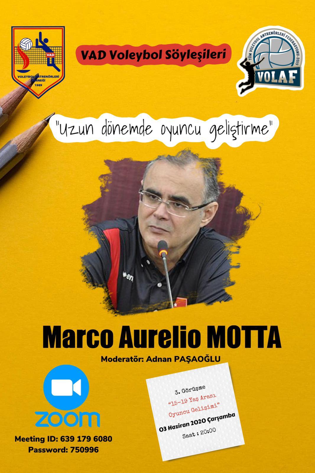 Derneğin Zoom uygulamasında canlı olarak yayınlanacak olan söyleşinin konuğu Eczacıbaşı VitrA Başantrenörü Marco Aurelio Motta.