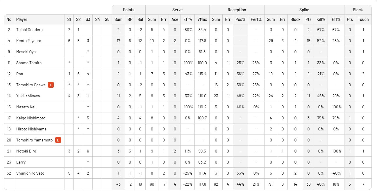 İlk iki seti büyük bir çekişme ve heyecana sahip olan maçta Japon pasör çaprazı Kento Miyaura'nın 17 sayılık performansı kendisini maçın en skorer oyuncusu yapmasına rağmen Japonya'yı yarı finale taşımaya yetmedi. ayrıca Yuki Ishikawa'nın 11 sayı ile çift haneli sayılara ulaşmasını sağladı ancak set kazanmak ve maça tutunmak için yeterli olmadı.