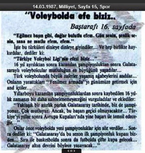 Coronovirüs Covid19 pandemisi sebebiyle evde kaldığımız bu karantina günlerinde geçmişe doğru arşivleri karıştırmaya devam ederken ulaştığımız bir bilgiye göre voleybolumuzda 'Efeler' kelimesini ilk kez kullanan Galatasaray Erkek Voleybol Takımı olduğunu gördük.