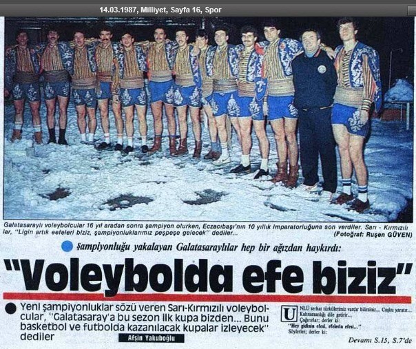 14 Mart 1987 Yılında Milliyet Gazetesinde Afşin Yakuboğlu imzalı bir haberde,Eczacıbaşı Erkek Voleybol Takımının 9 yıllık şampiyonluk serisine son veren Enver Göçener'in çalıştırdığı Galatasaray Erkek Voleybol Takımı haberinde 'Voleybolda Efe Biziz' başlıklı yazısına denk geldik.