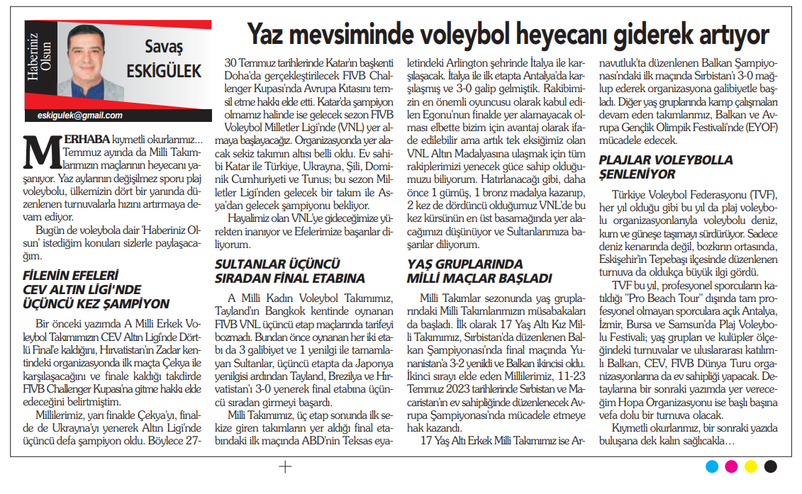 Temmuz ayında da Milli Takımlarımızın maçlarının heyecanı yaşanıyor. Yaz aylarının değişilmez sporu plaj voleybolu, ülkemizin dört bir yanında düzenlenen turnuvalarla hızını artırmaya devam ediyor.
