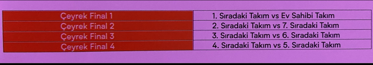 Ev sahibi ekip olarak ilk 8’e girmemiz durumunda grup birincisi olacak ve diğer takımlar puan durumuna göre sıralanacak.