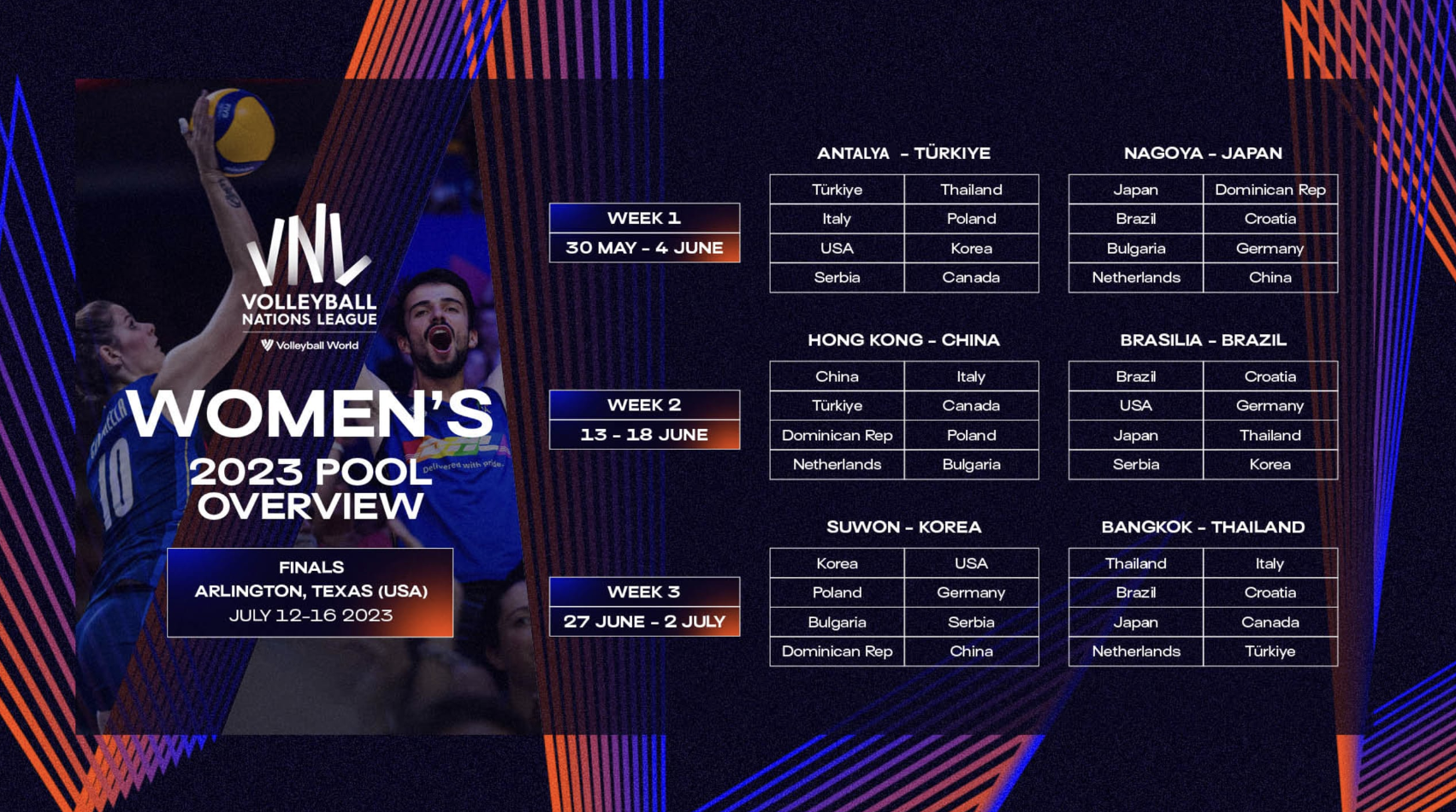 2023 FIVB Voleybol Milletler Ligi Formatı, Eşleşmeleri, Şehirleri-Salonları