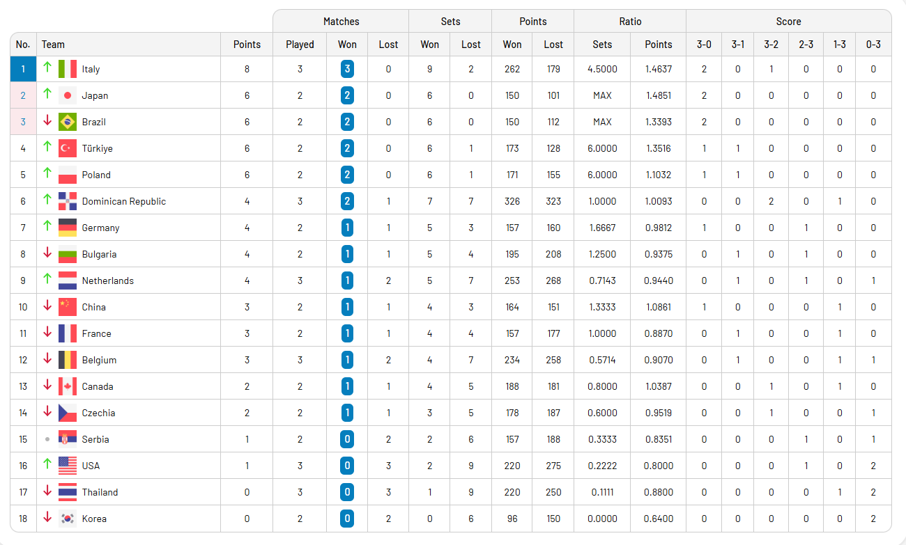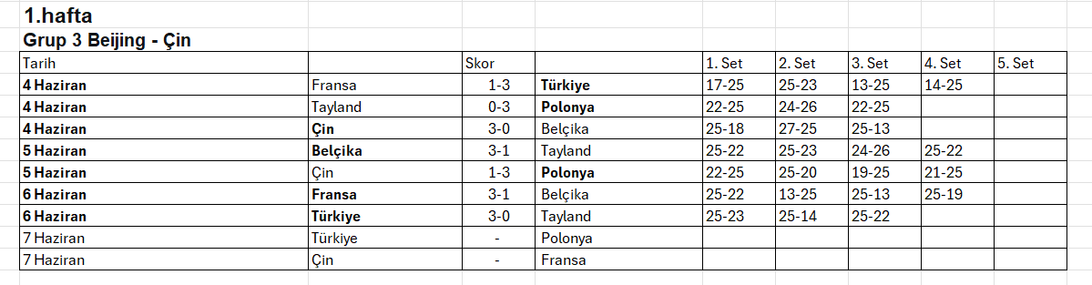 2025 FIVB Milletler Ligi’nde (VNL) heyecanı 6 Haziran Cuma günü oynanan maçlarla devam etti. Üç grup halinde üç farklı ülkede oynanacak olan 1. Etap maçlarında üçüncü gün tamamlandı. İlk etapta 1.Grup maçları Ottowa – Kanada, 2.Grup maçları Rio de Janeiro – Brezilya’da, 3.Grup maçları ise Beijing -Çin’de oynanıyor. VNL’de üçüncü gün oynanan maçlarda alınan sonuçlar ve 7 Haziran Cumartesi günü oynanacak maçların programı şöyle: